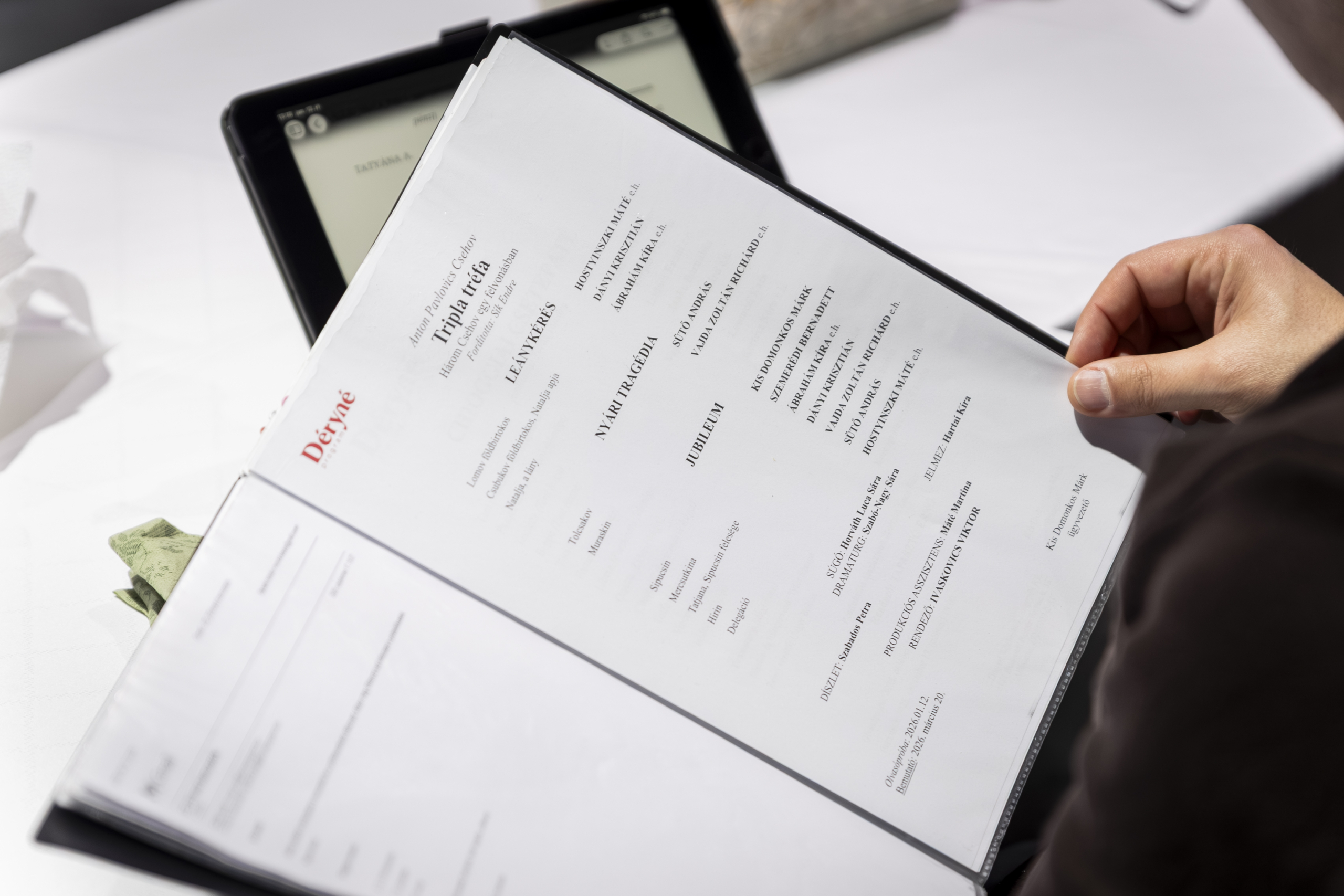 Mi történik, amikor a szerelem, az ünnep vagy egy baráti beszélgetés emelkedett pillanatait elnyelik a mindennapok kicsinyes játszmái? A Déryné Társulat új bemutatója erre a kérdésre keresi a választ Anton Pavlovics Csehov három egyfelvonásos mesterművén keresztül. A Tripla tréfa – Három Csehov egy felvonásban a Leánykérés, a Nyári tragédia és a Jubileum című darabokat fűzi egyetlen estbe, Ivaskovics Viktor rendezésében. A bemutató időpontja: március 21.