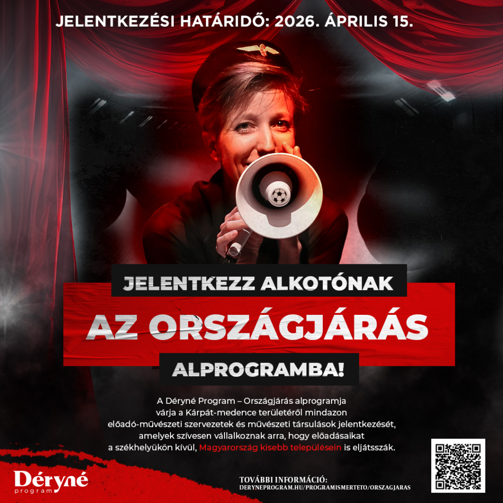 A Déryné Program Országjárás alprogramja várja a Kárpát-medence előadó-művészeti szervezeteinek és társulatainak jelentkezését, akik előadásaikat Magyarország kisebb településein is szívesen bemutatnák.